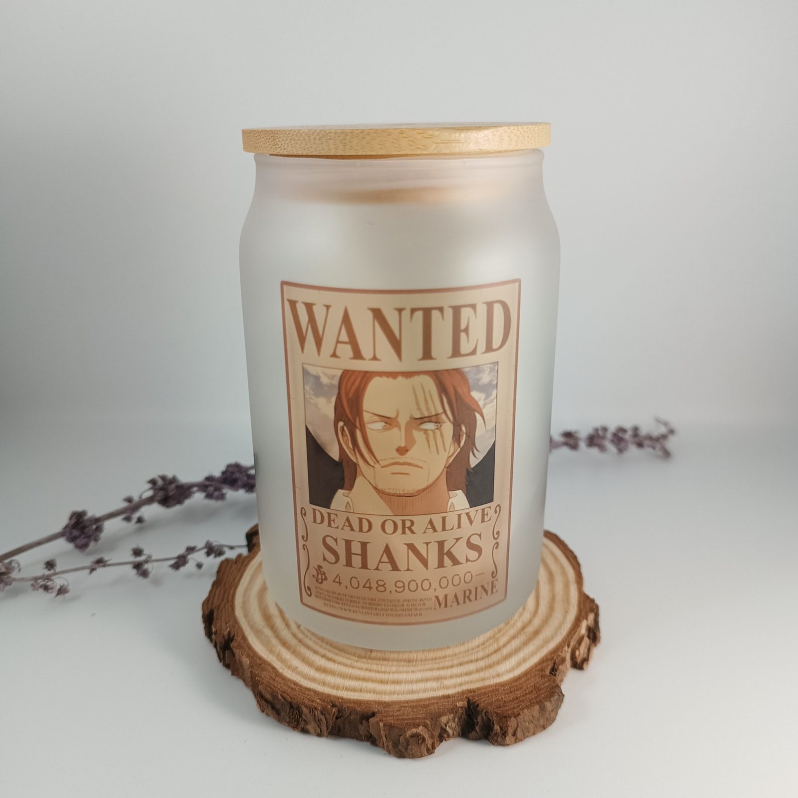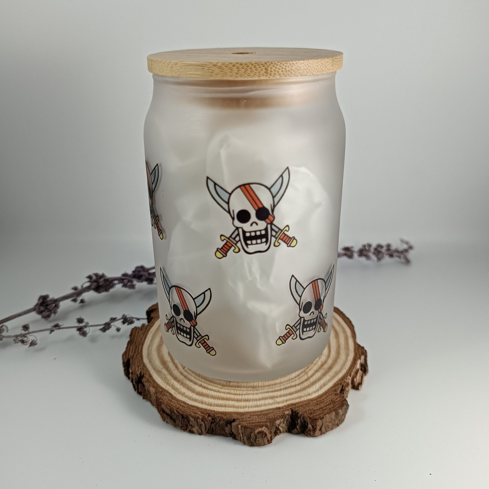 Vaso de vidrio con tapa de bambú y pajita de aluminio. Capacidad aprox. 400ml